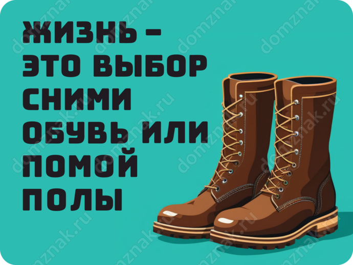Табличка «Жизнь - это выбор. сними обувь или помой полы»